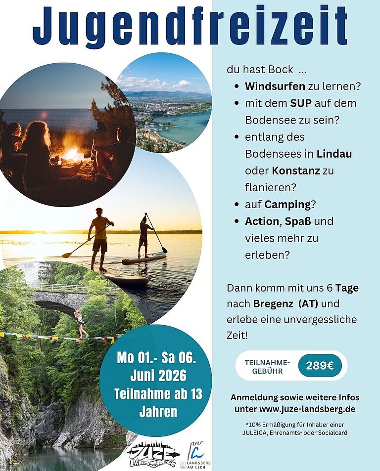 Auch im Jahr 2026 bietet das Jugendzentrum Landsberg am Lech wieder zwei abwechslungsreiche und erlebnisreiche Jugendfreizeiten für Jugendliche ab 13 Jahren an.