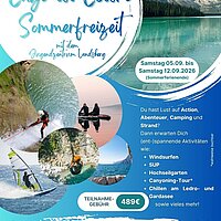 In der sechsten Woche der Sommerferien, von Samstag, 5. September, bis Samstag, 12. September 2026, geht es für acht Tage und sieben Nächte an den Ledrosee in Italien. Die Region rund um den Ledrosee und den nahegelegenen Gardasee bietet ideale Bedingungen für ein vielseitiges Outdoor-Programm. Nach dem gemeinsamen Aufbau des Camps auf einem der schönsten Campingplätze der Region erkunden die Jugendlichen täglich die Umgebung. Ob Windsurfen, Stand-up-Paddling, Hochseilgarten, Canyoning oder entspannte Stunden am See – die Teilnehmerinnen und Teilnehmer gestalten das Programm aktiv mit.