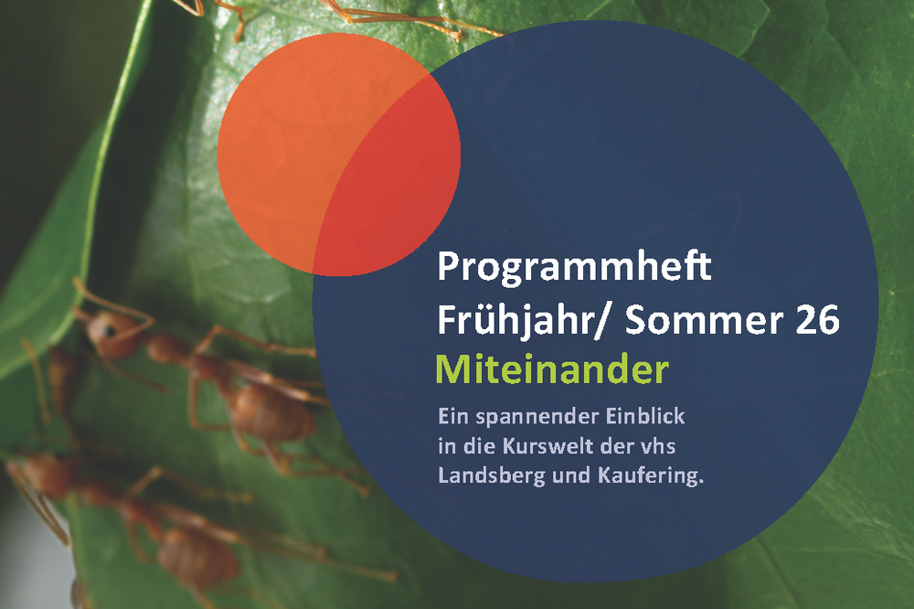 Das gesamte Kursangebot ist bereits auf der Website der Volkshochschule (www.vhs-landsberg.de) einsehbar und online buchbar. Eine telefonische Anmeldung unter 08191 128-311 oder -312 oder per Mail an vhs[at]landsberg[dot]de ist ebenfalls ab sofort möglich. Persönliche Anmeldungen sind im vhs-Büro in der Hubert-von-Herkomer-Straße 110 zu den Öffnungszeiten (bitte Ferienöffnungszeiten beachten!) möglich. Das gedruckte Programmheft wird am 24.01.2026 als Beilage im Landsberger Tagblatt verteilt. Ab dem 26.01.2026 liegt das gedruckte vhs-Programmheft an den gewohnten Auslegestellen in der Stadt und im Landkreis Landsberg aus.