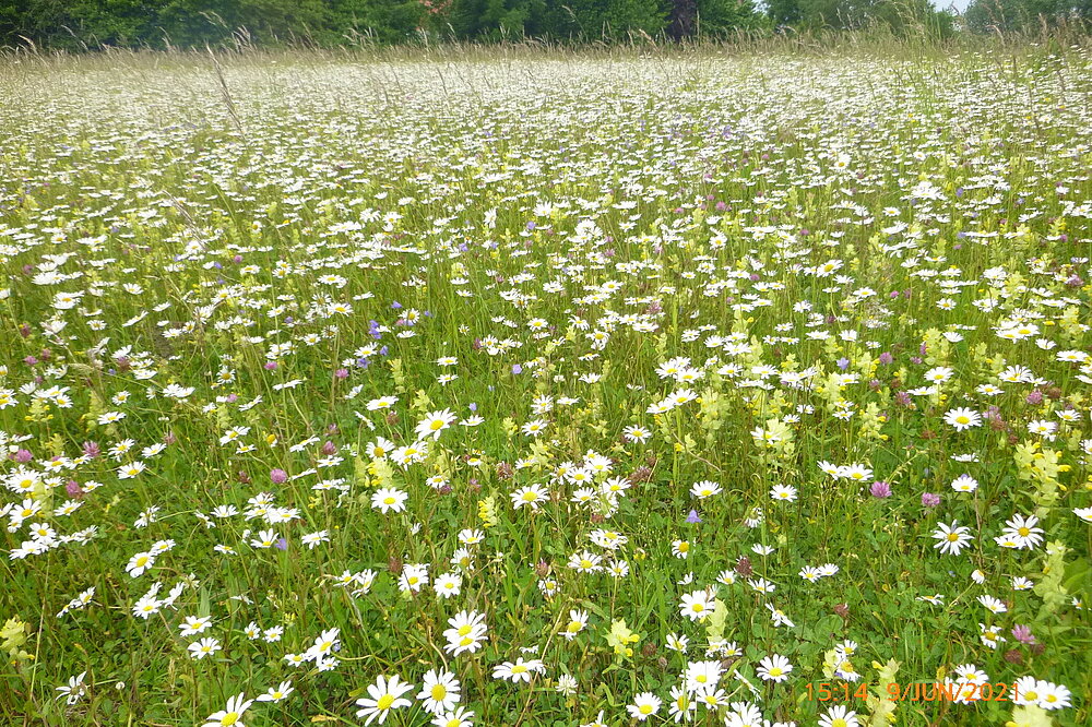 Um weitere Trittsteine für Insekten zu schaffen, werden in den Wiesen und im Straßenbegleitgrün zusätzlich gezielt Blühinseln stehen gelassen.