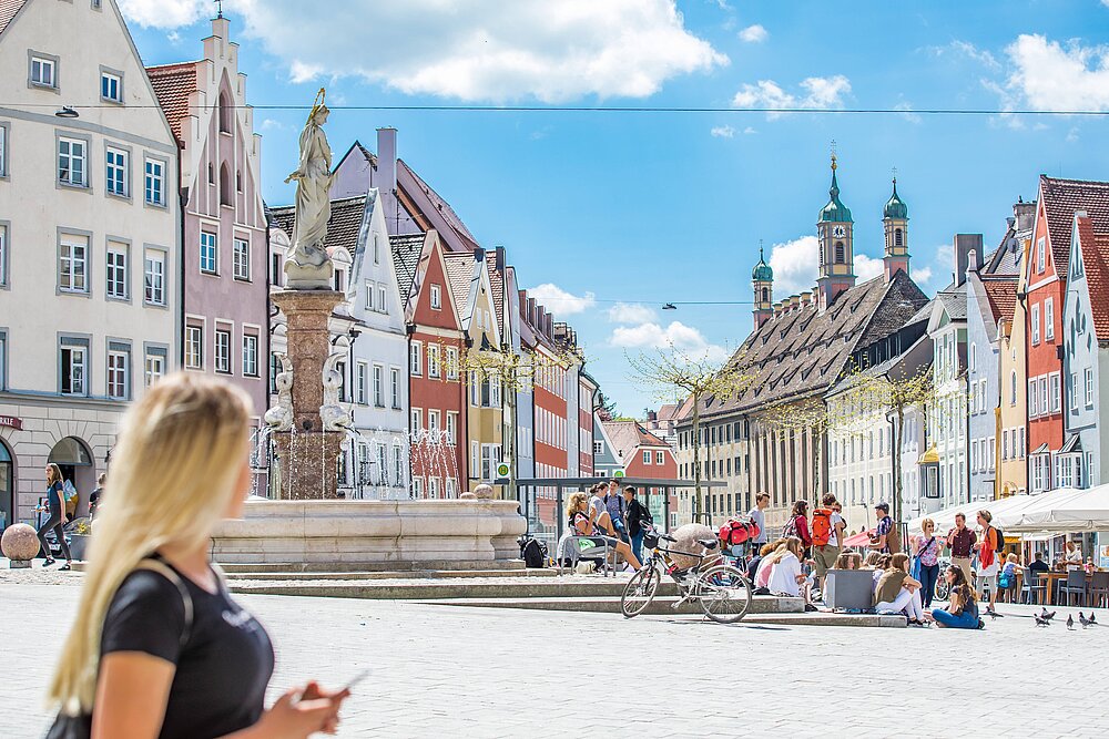 Den Mittelpunkt der Altstadt bildet der um 1700 errichtete Marienbrunnen auf dem Hauptplatz. Eine Skulptur einer Maria Immaculata von dem Tiroler Bildhauer Streiter (1783) steht in der Brunnenmitte und aus Delphinen sprudelt frisches Wasser in das Bassin. Vier große Marmorkugeln beschließen die Brunnenanlage.